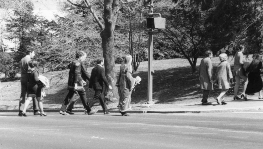 had the foresight to transfer to JFK and told me about this peace march which we attended together. He also told me a lot about his new school and new friends which made me increasingly sorry I hadnʼt transferred also.