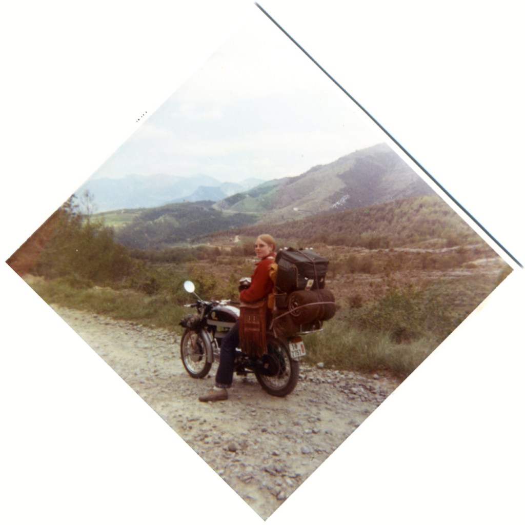Chris–We had no plan for this trip except to visit Greece. Our tickets were to Valencia Spain with a short stop for unloading in Tangier. Originally we had planned to hitchhike as much as possible but Jeff and Lainie convinced us that their plan was better: buy a motorcylcle in Barcelona. Janet decided to do that too.